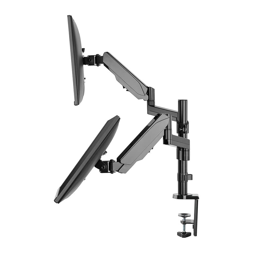 Position screens at eye level with fully adjustable monitor arms that free up desk space.
